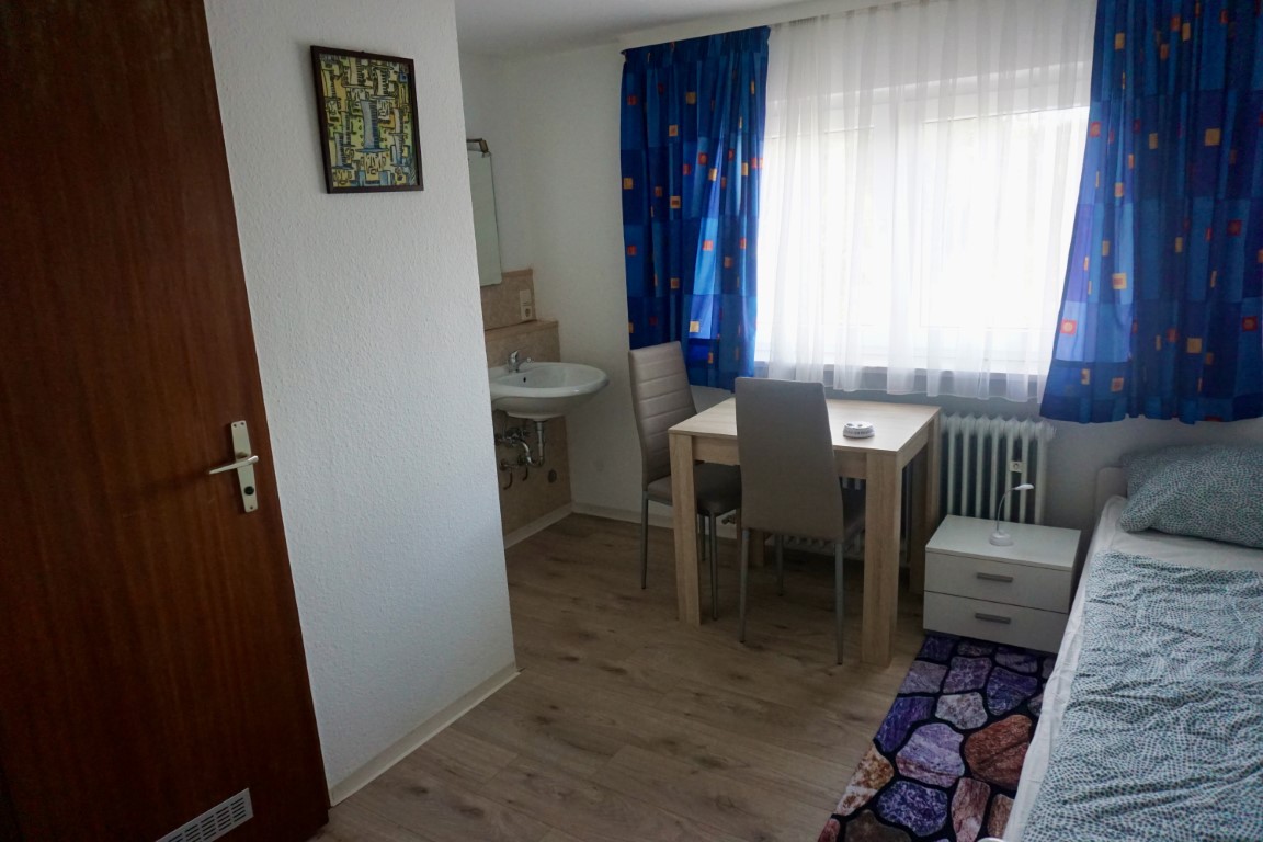 – Einzelbett mit Nachttisch